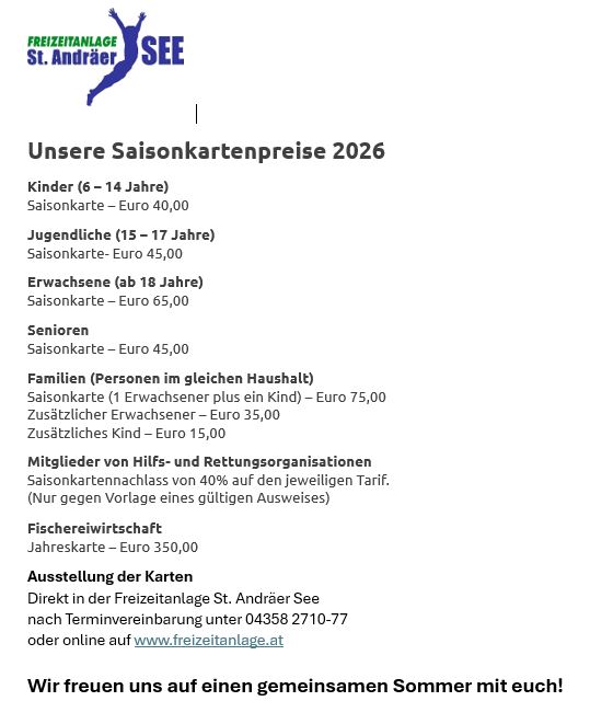 Eine Saisonkarte für den St. Andräer See!