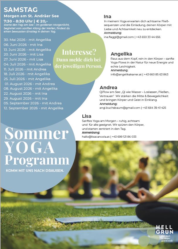 Starte den Tag mit Yoga am See – im goldenen Morgenlicht, begleitet von der stillen Präsenz des Wassers, findest du Klarheit, Energie und einen bewussten Einstieg in deinen Tag. Die frische Luft und die friedliche Natur machen jede Bewegung zu einem kraftvollen Neubeginn. Yoga, frische Luft und die Ruhe des Wassers – ein Morgen am See, der Körper und Seele berührt. Wir freuen uns auf dich!